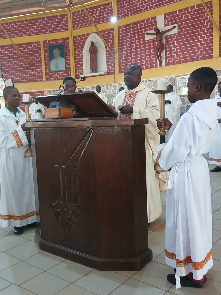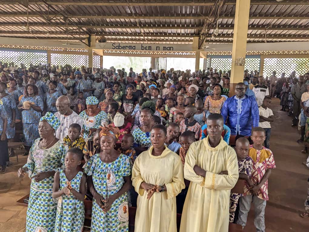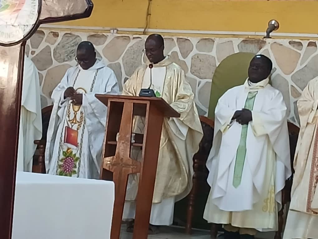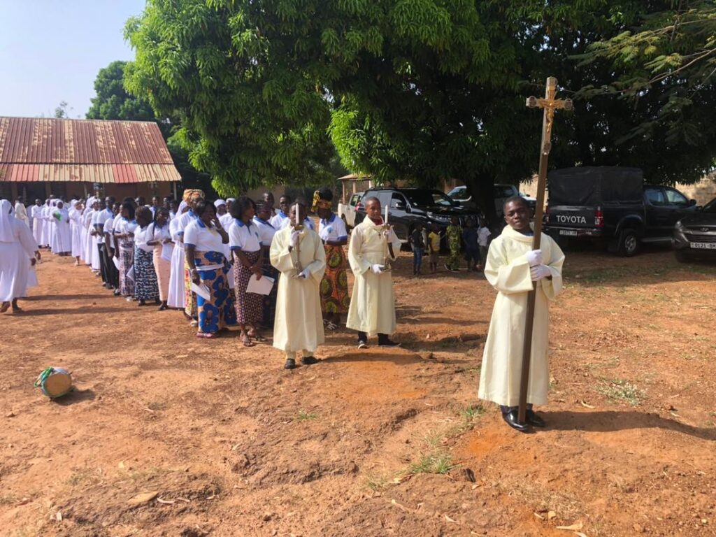 À Siou, un autre événement a marqué le week-end : l’accueil du R.P. Gabriel KALGORA, fils du milieu, à l’occasion de son jubilé d’or sacerdotal. Quatre mois après la célébration officielle à Kara, le prêtre est revenu dans sa paroisse d’origine pour rendre grâce avec les siens.