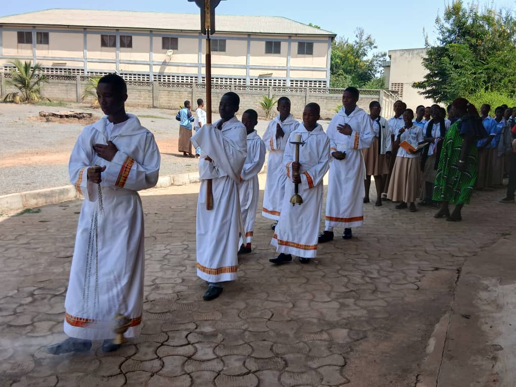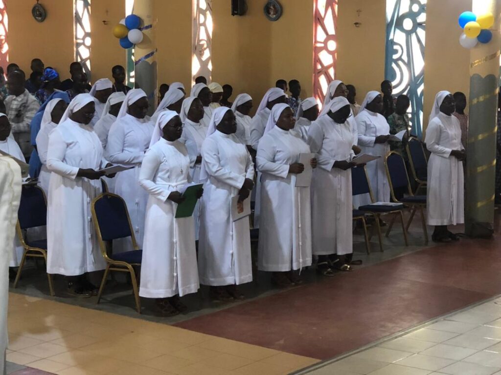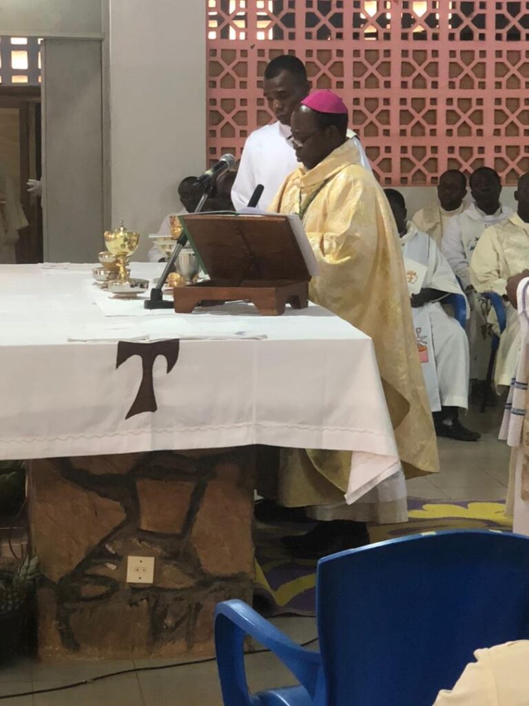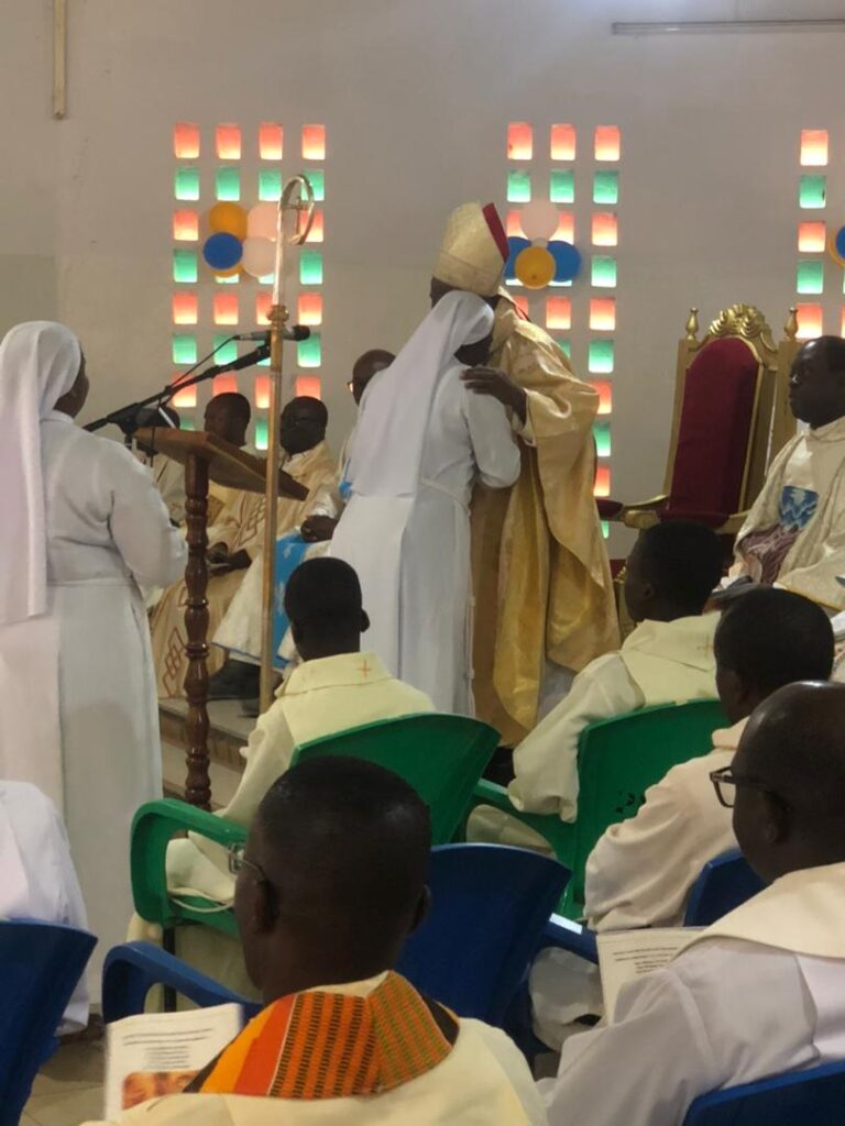À Siou, un autre événement a marqué le week-end : l’accueil du R.P. Gabriel KALGORA, fils du milieu, à l’occasion de son jubilé d’or sacerdotal. Quatre mois après la célébration officielle à Kara, le prêtre est revenu dans sa paroisse d’origine pour rendre grâce avec les siens.