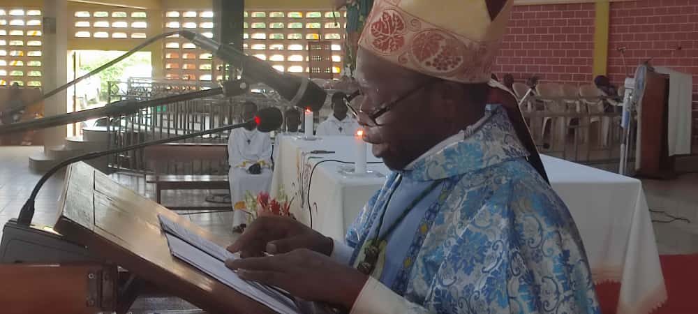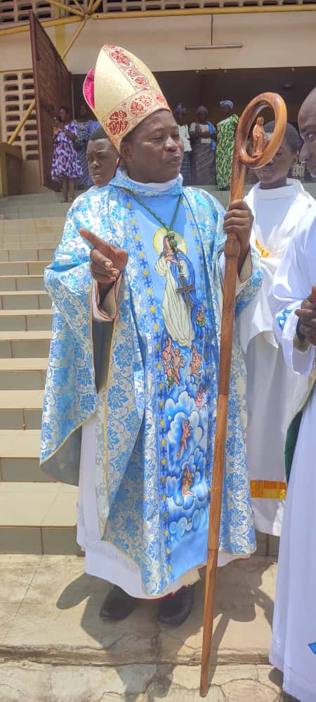 Mgr Jacques D. LONGA à la messe d’intronisation du Père Boniface KOLOMBIA à la Paroisse ND de Fatima
