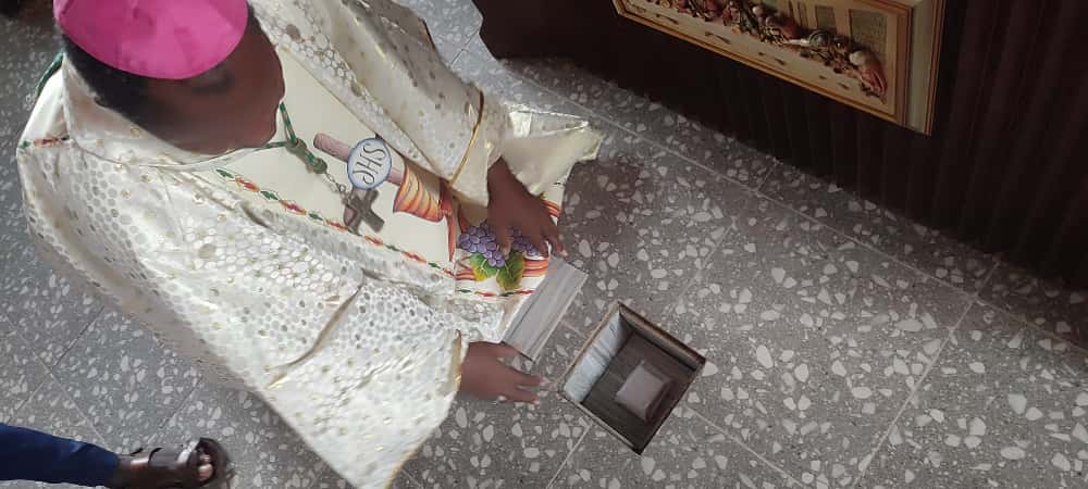 En 2019 le diocèse de Kara a été durement éprouvé, selon nos vues humaines, avec le décès de deux (2) de ses prêtres, dans la fleur de l’âge : le P. Pierre ASSOTY, dans la nuit du 18 au 19 juillet ici au diocèse et le P. Dieudonné SONTA en Italie. L’université salésienne où étudiait le P. SONTA a encouragé le diocèse de Kara à réaliser quelque chose en l’honneur du père défunt. Les consulteurs réunis proposèrent unanimement la construction d’une chapelle au Centre Pastoral Mgr BAKPESSI (CPB). Cette chapelle serait construite non seulement en l’honneur de SONTA mais des deux (2) prêtres défunts : PIERRE ET DIEUDONNE.