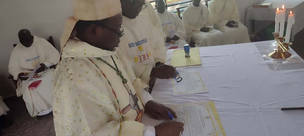 Pour cette nouvelle année pastorale, le thème choisi est tiré de l’épître aux Hébreux, chapitre 13, verset 7 : « Souvenez-vous de ceux qui nous ont dirigés ». Un rappel pour honorer les deux premiers évêques du diocèse, Monseigneur Ernest Patili ASSIH et Monseigneur Ignace Sambar TALAKENA. Au cours de cette rencontre la chapelle Saint Paul a été consacrée en mémoire des Pères Pierre AZOTI et Dieudonné SONTA.