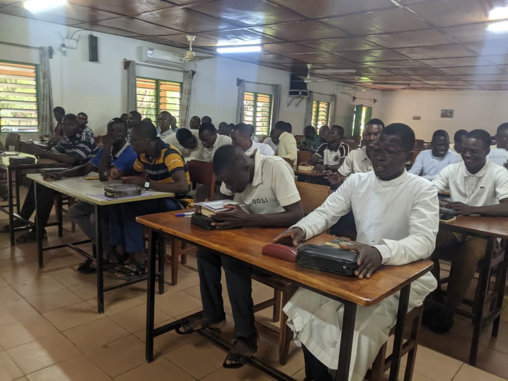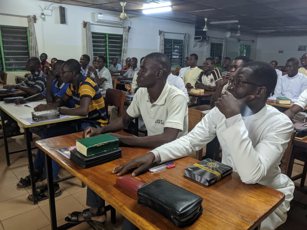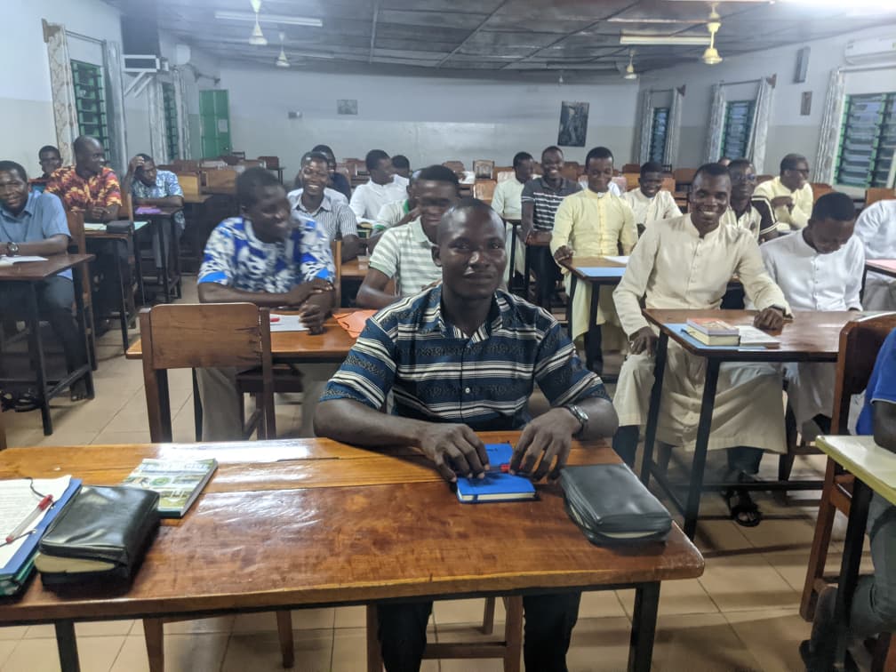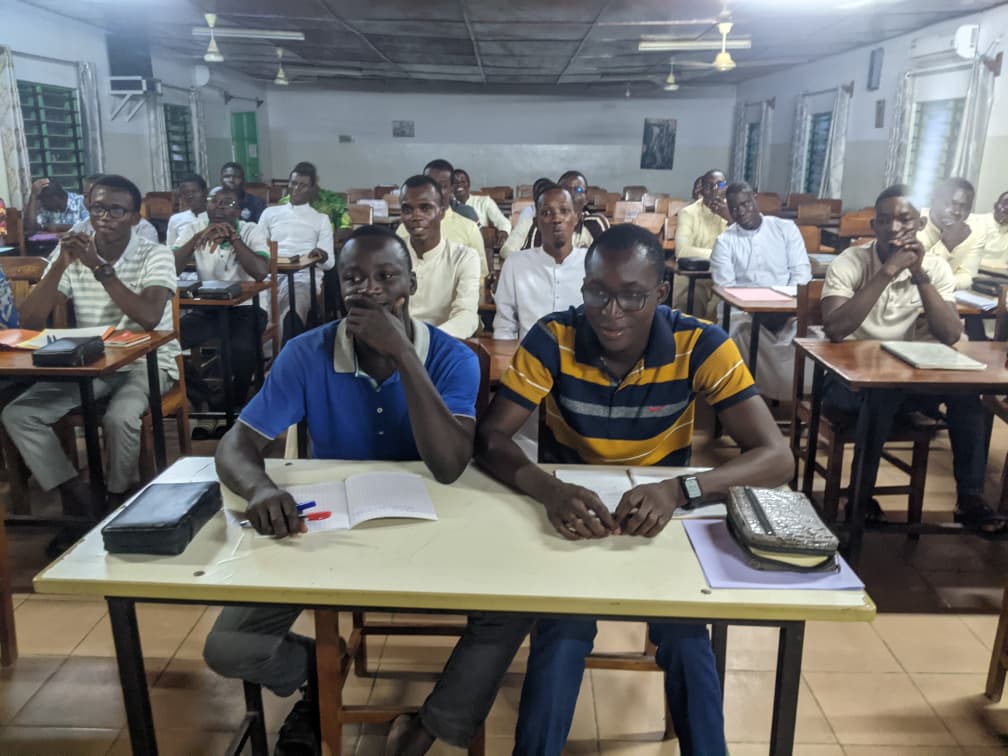 Mes pères, les cadets sont à l’école de leurs aînés. Mais les aînés apprennent, s’enrichissent en se frottant avec les plus jeunes. Nous apprenons les uns des autres car chacun de nous est une parole de Dieu, chacun de nous a reçu le don de manifester l’Esprit en vue du bien de tous. (Cf. 1 Co 12, 7). A la lumière de cette vérité de foi, mes pères, en nous mettant de tout notre cœur au service des jeunes et particulièrement de ces séminaristes que voici, nous nous enrichissons, nous devenons plus ce que nous avons choisi d’être et de vivre. Les dons reçus de Dieu peuvent être comparés aux muscles. Un muscle qui ne travaille pas s’atrophie. Le don reçu qui n’est pas mis au service des autres ne s’épanouit pas ou mieux, s’épanouit difficilement. C’est pourquoi plus le prêtre se donne à son ministère plus il devient rayonnant de cette onction qu’il a reçu le jour de son ordination presbytérale. Merci donc mes pères de grandir chaque jour comme prêtre, homme et disciples de Jésus Christ par le don de nous-même au service de nos frères et sœurs.