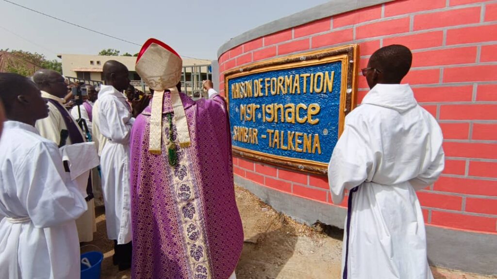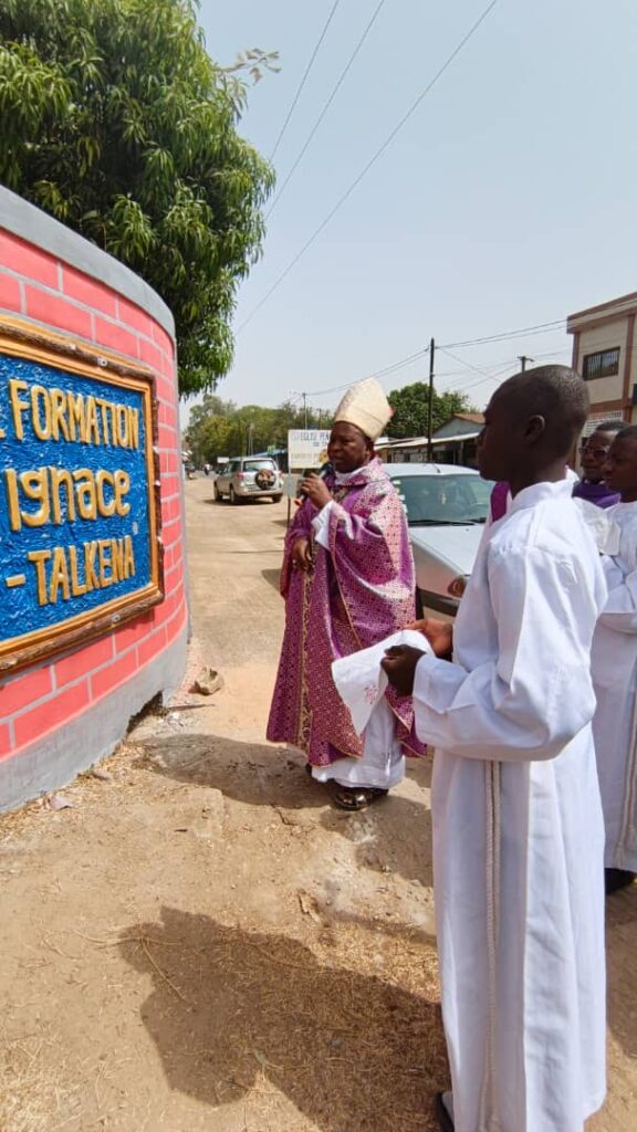 À l’issue de la messe pontificale d’action de grâce, le dimanche 22 février donc, ont suivi la bénédiction du Petit Séminaire et le dévoilement de la nouvelle plaque à l’entrée du Foyer officialisant le baptême du foyer séminaire en « Maison de formation Mgr Ignace SAMBAR-TALKENA » puis la lecture de l’Acte d’inauguration. Ce geste fort inscrit désormais son nom dans la mémoire visible et durable de l’institution qu’il a servie avec tant de zèle.
